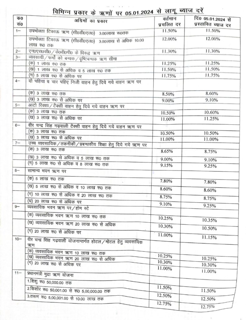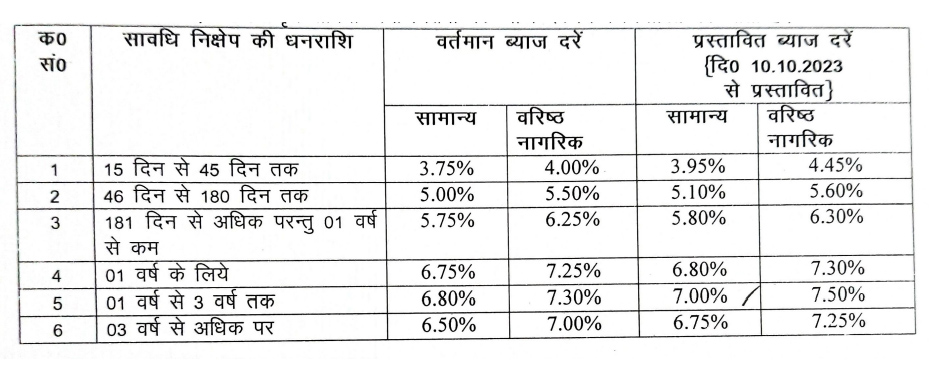 जमाओं पर ब्याज दरें दि0 05-01-2024 से प्रभावी ब्याज दरें प्रतिशत में